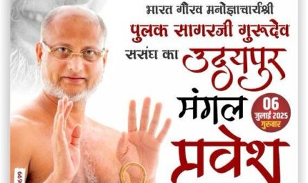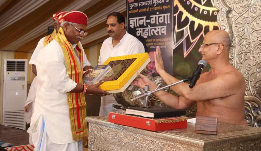 उदयपुर 24 जुलाई। सर्वऋतु विलास स्थित महावीर दिगम्बर जैन मंदिर में राष्ट्रसंत आचार्यश्री पुलक सागर महाराज ससंघ का चातुर्मास भव्यता के साथ संपादित हो रहा है। गुरुवार को टाउन हॉल नगर निगम प्रांगण में 27 दिवसीय ज्ञान गंगा महोत्सव के पांचवें दिन नगर निगम प्रांगण में विशेष प्रवचन हुए।