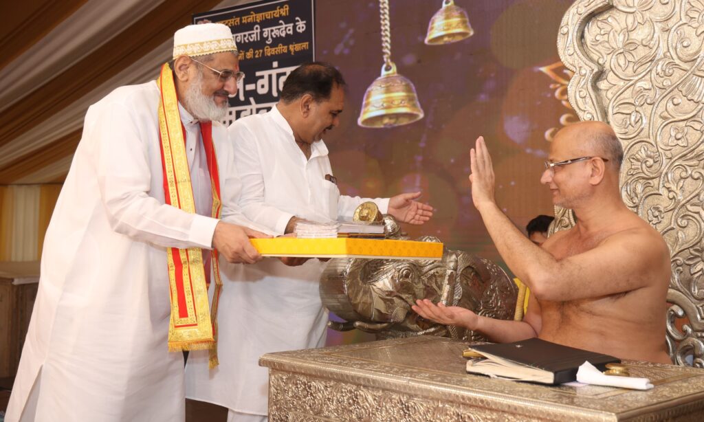 उदयपुर 3 अगस्त। सर्वऋतु विलास स्थित महावीर दिगम्बर जैन मंदिर में राष्ट्रसंत आचार्यश्री पुलक सागर महाराज ससंघ का चातुर्मास भव्यता के साथ संपादित हो रहा है। रविवार को टाउन हॉल नगर निगम प्रांगण में 27 दिवसीय ज्ञान गंगा महोत्सव के 15वें दिन नगर निगम प्रांगण में विशेष प्रवचन हुए। रविवार को नगर निगम प्रांगण में सांसद मन्नालाल रावत ने आचार्य पुलक सागर महाराज के दर्शन कर आशीर्वाद लिया।