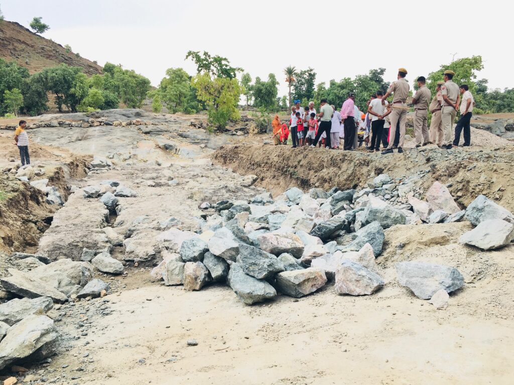 उदयपुर, 18 जून। उदयपुर जिले के ग्राम पंचायत पाणुंद में गांव के भगड़ पर आम रास्ते में बन रहे एनीकट निर्माण का कार्य को ठेकेदार द्वारा ग्रामीणों के विरोध के बाद भी नहीं रोका गया तथा ठेकेदार द्वारा चोरी-छीपे यह कार्य किया जा रहा था जिस पर सभी ग्रामीणों ने उदयपुर आकर जिला कलेक्टर व सम्बन्धि अभियंता जल संसाधन विभाग एवं भीण्डर एसडीएम को ज्ञापन सौंपा था। लेकिन ठेकेदार द्वारा फिर भी आम रास्ते पर एनिकट का कार्य नहीं रोका गया। जिस पर सभी ग्रामीण एकत्रित होकर भीण्डर एसडीएम रमेश बहेडिय़ा के पास पहुंचे एवं अपना विरोध दर्ज कराया। जिस पर एसडीएम रमेश बहेडिय़ा व भीण्डर थाने से पुलिस टीम, पटवारी सहित पुरी टीम आम रास्ते में बन रहे एनिकट पर पहुंचे व ठेकेदार एवं सम्बन्धित विभाग के अधिकारियों को फटकार लगाई। एसडीएम व ग्रामीणों के पहुंचने पर वहां काम कर रहे सभी कारीगर एवं मजदूर फावडे तगारी लेकर मौके से भाग गए एवं जेसीबी भी मौके से फरार हो गई। एसडीएम ने कहा कि यह आम रास्ता है इस पर एनिकट नहीं बनना चाहिए। अगर ठेकेदार द्वारा यह कार्य चोरी-छीपे किया जाता है तो उसके खिलाफ आवश्यक कार्यवाही करने के निर्देश दिए। एसडीएम ने पाणुन्द पुलिस चौकी प्रभारी को भी निर्देश देते हुए कहा कि अगर एनिकट का कार्य वापस शुरू होता है तो तुरन्त प्रभाव से ठेकेदार पर कार्यवाही की जाए। उन्होनें मौके से पूरा मेप देखा एवं पूरी जमीन वल्लभनगर विधानसभा क्षेत्र की होने की बात कही।